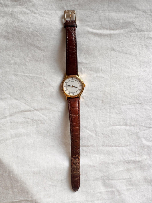 Vintage Seiko Watch; Leather Roman Numeral Watch