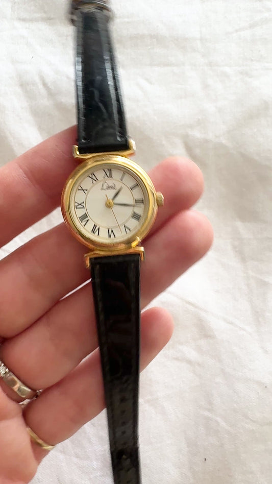 Vintage Roman Numeral Watch; Black Leather Watch