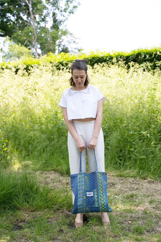 Quilted Blue Bag; Reworked Toile de Jouy Shoulder Bag