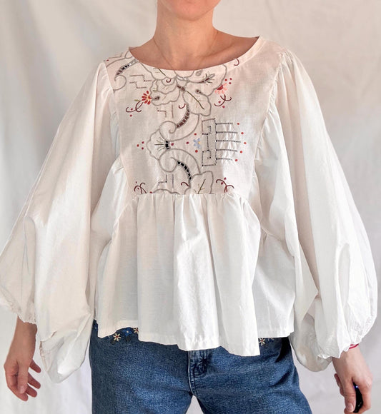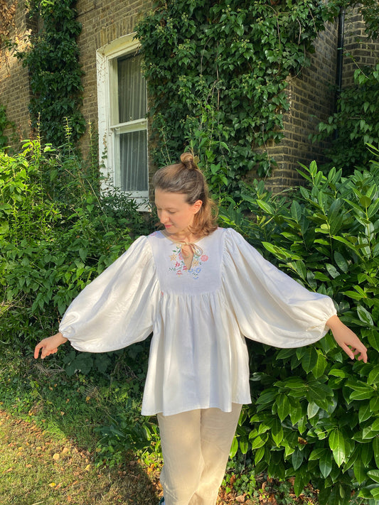 Reworked Embroidered Blouse; Upcycled Tablecloth Tunic