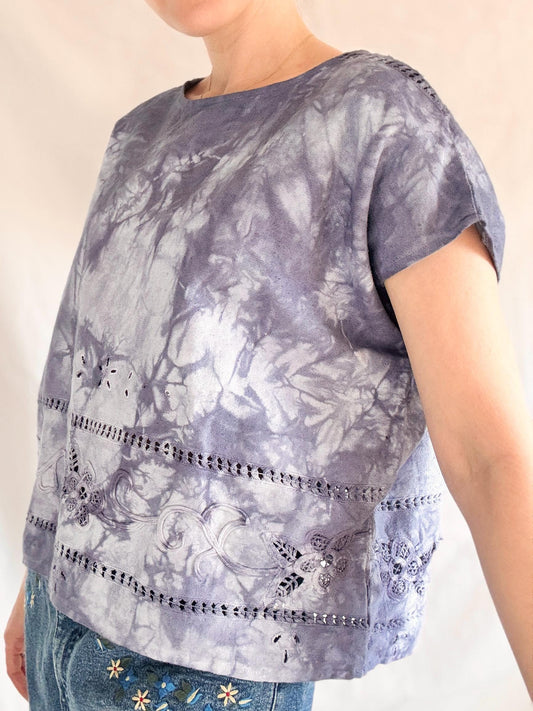 Reworked Tie Dye Top; Upcyled Linen Lace Blouse