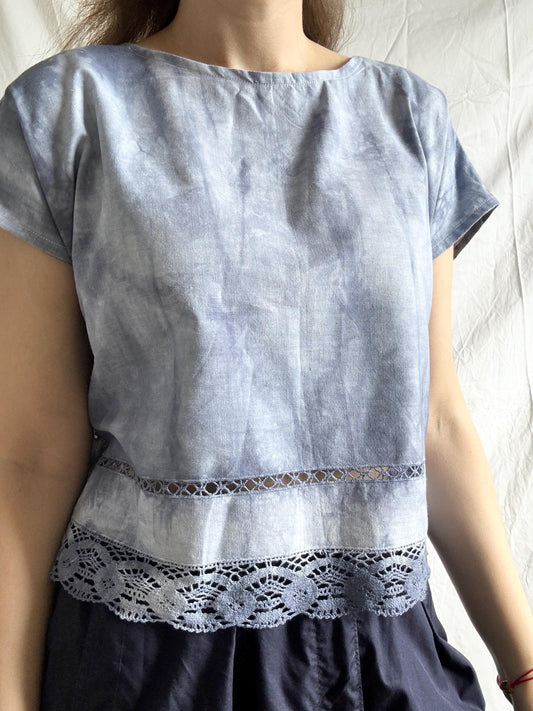 Reworked Tie Dye Top; Upcyled Cotton Lace Blouse
