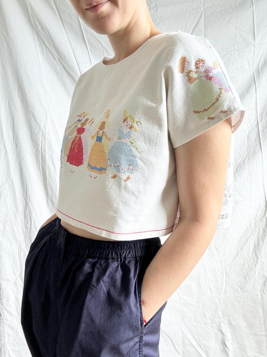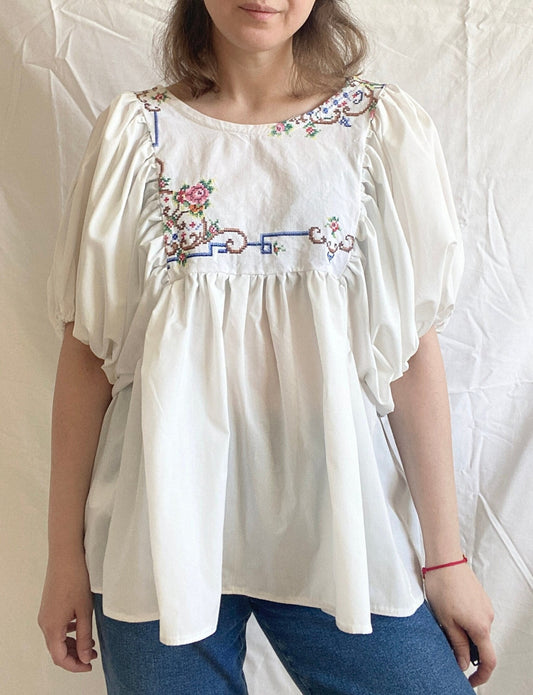 Embroidered Reworked Blouse; Cottagecore Romantic Top