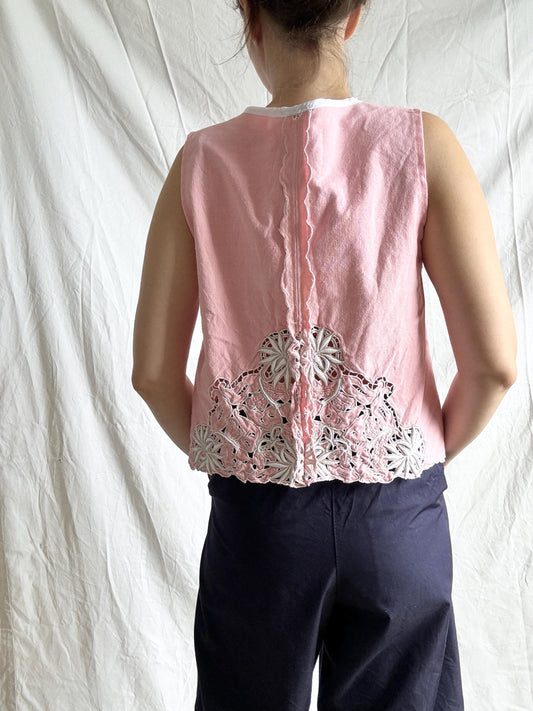 Reworked Embroidered Vest Top; Pink Waistcoat Top