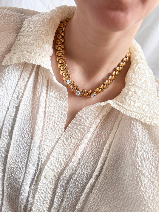 Vintage Braided Necklace; Stone Detailed Necklace