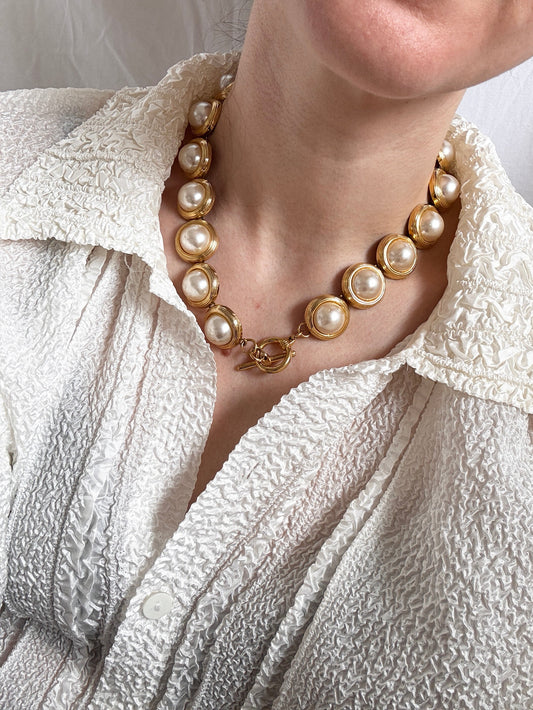 Vintage Chunky Necklace; Pearl Look Necklace