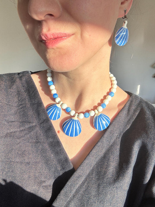 Shell Look 60s Necklace Earring Set