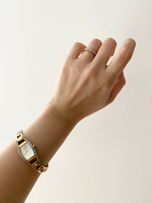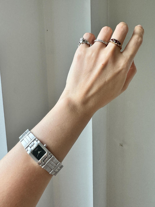Dainty Bracelet Watch; Vintage Silver Stone Watch