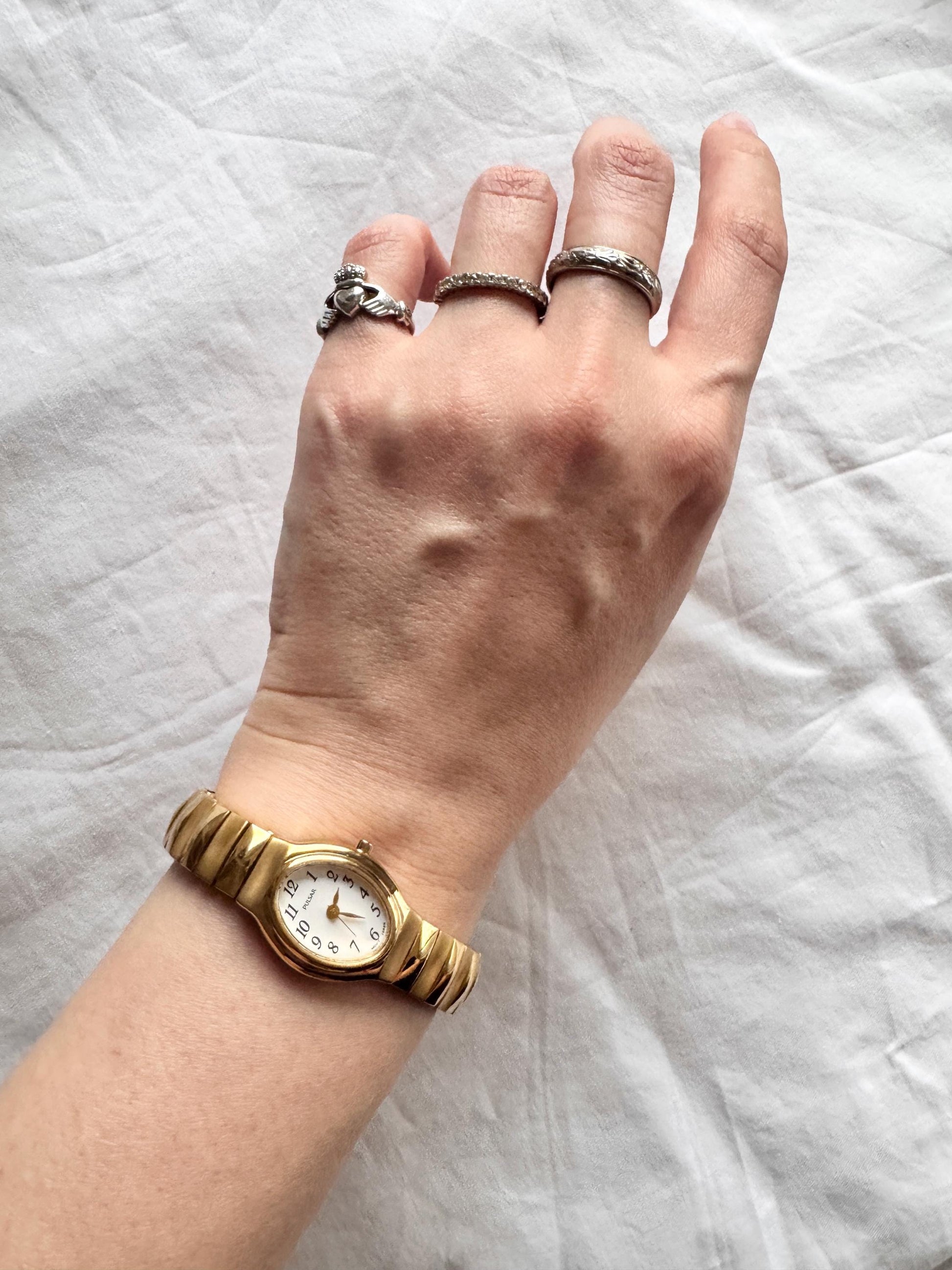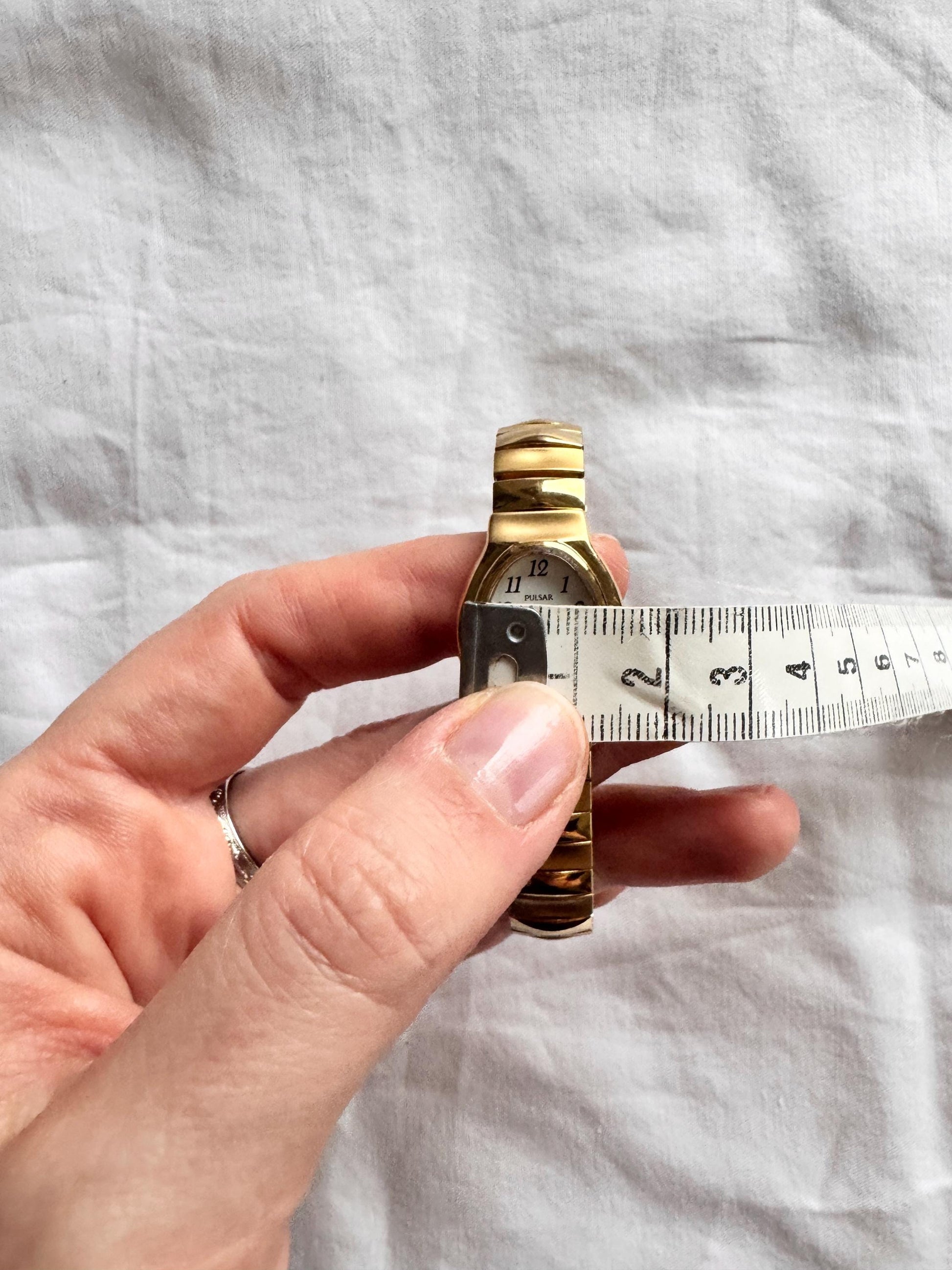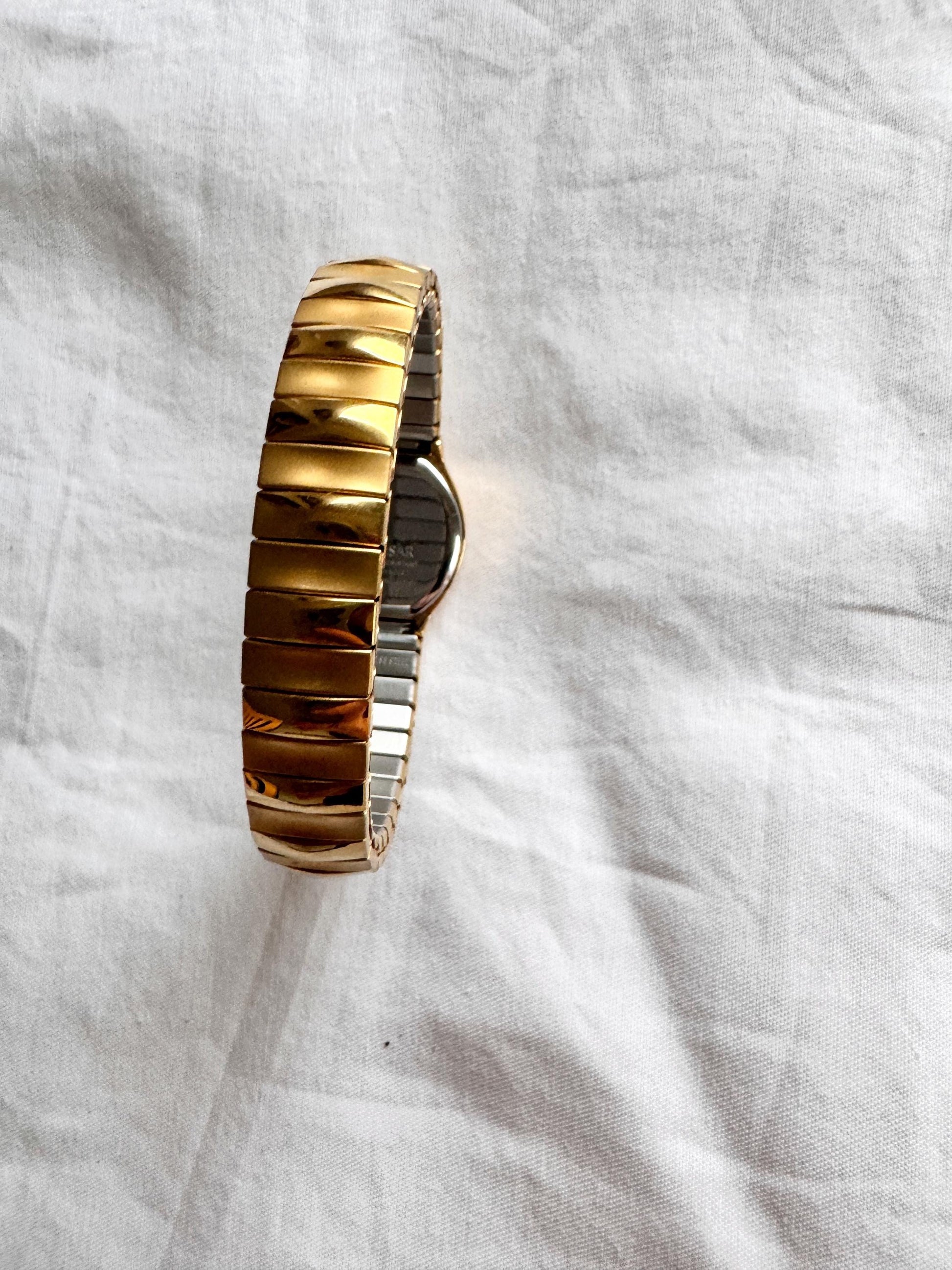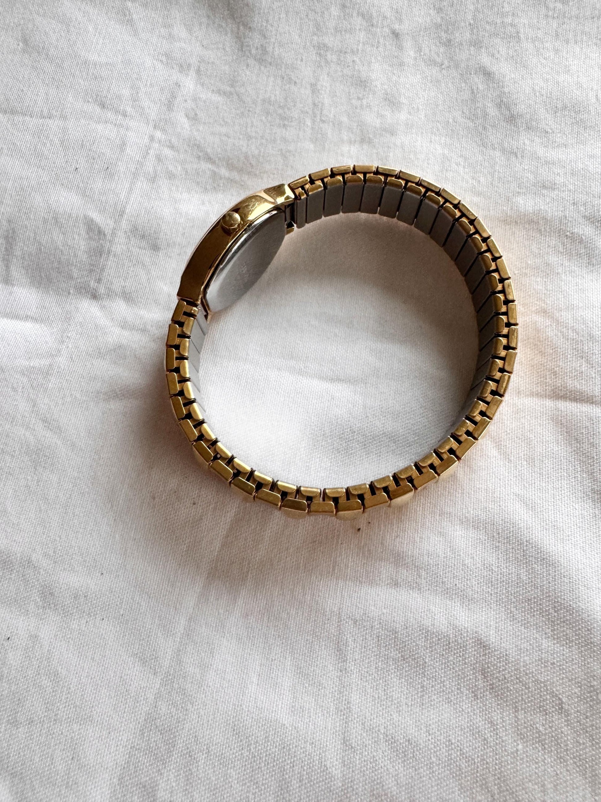90s Elastic Strap Watch; Gold Look Watch