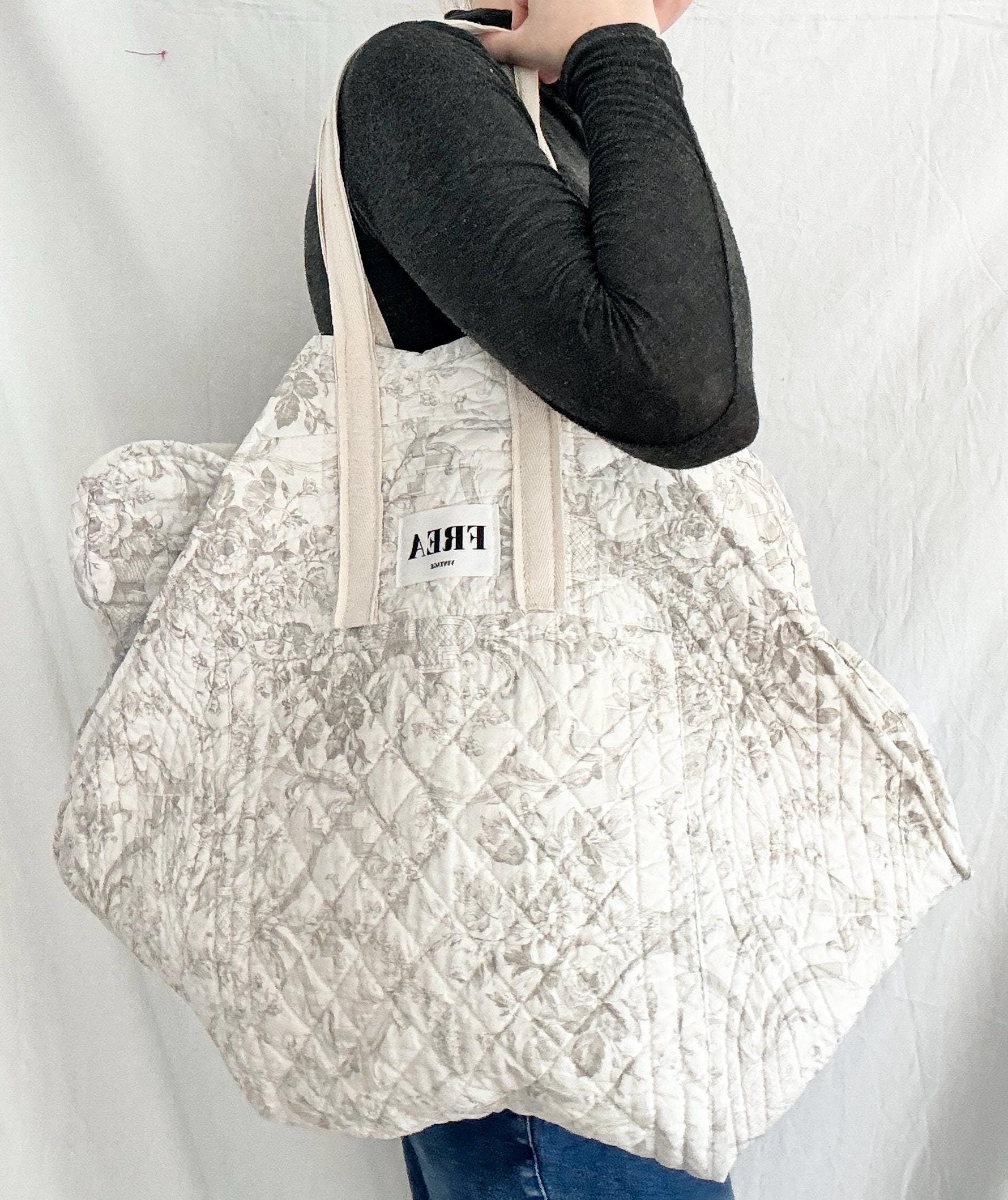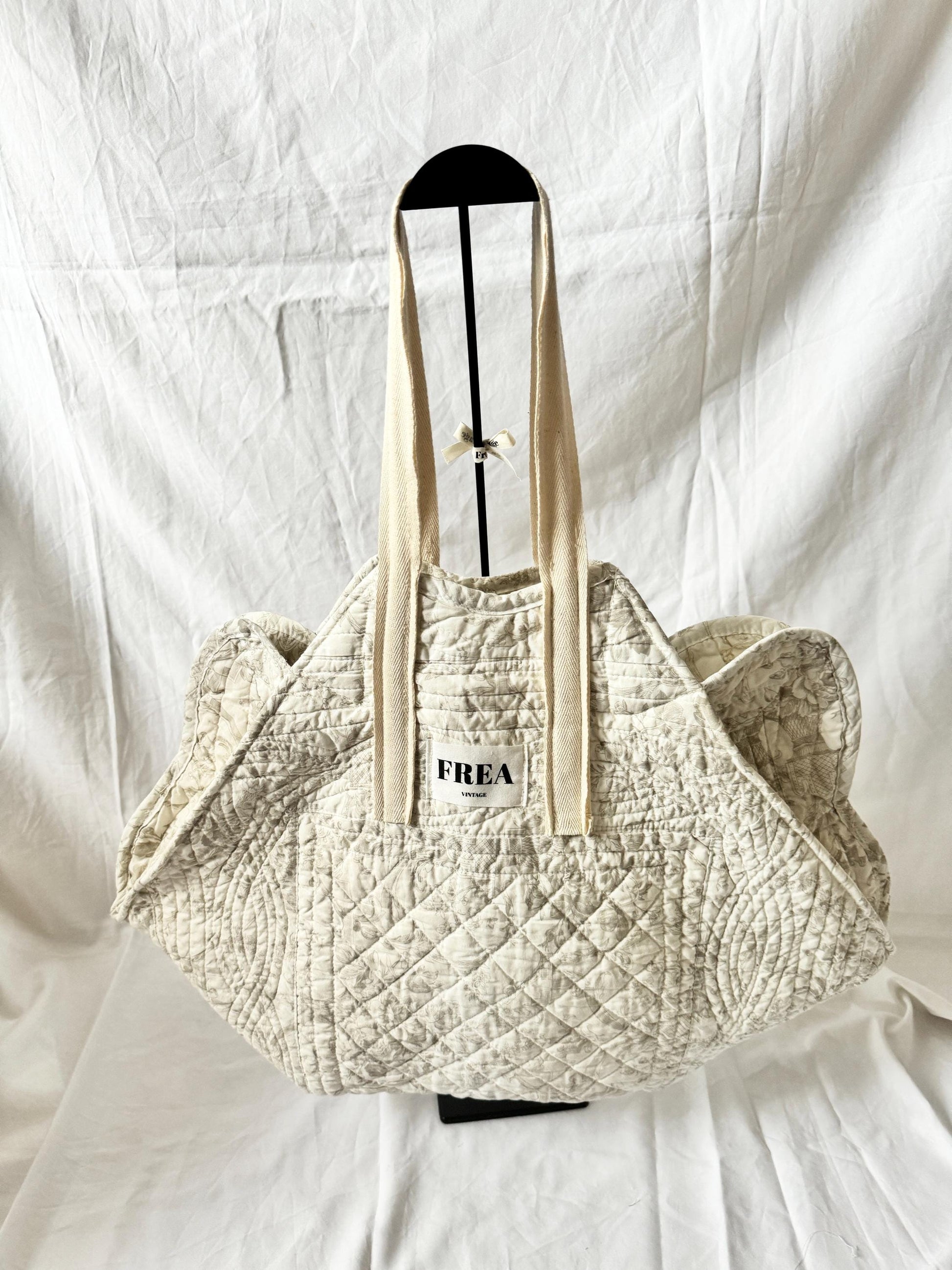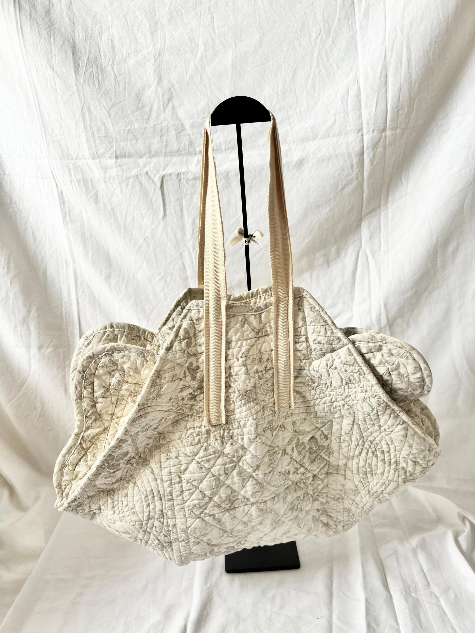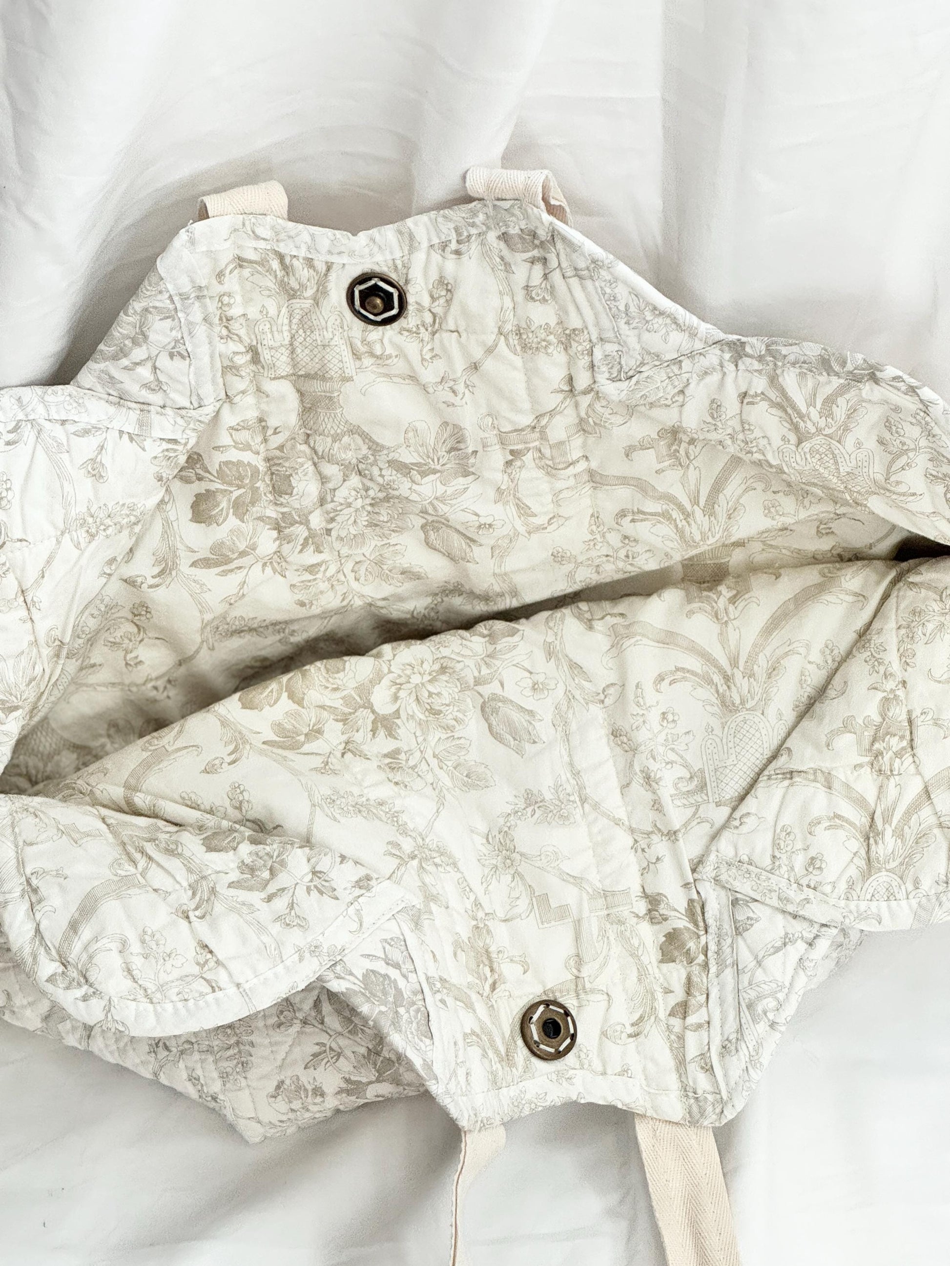 Quilted Beige Bag; Reworked Toile de Jouy Bag