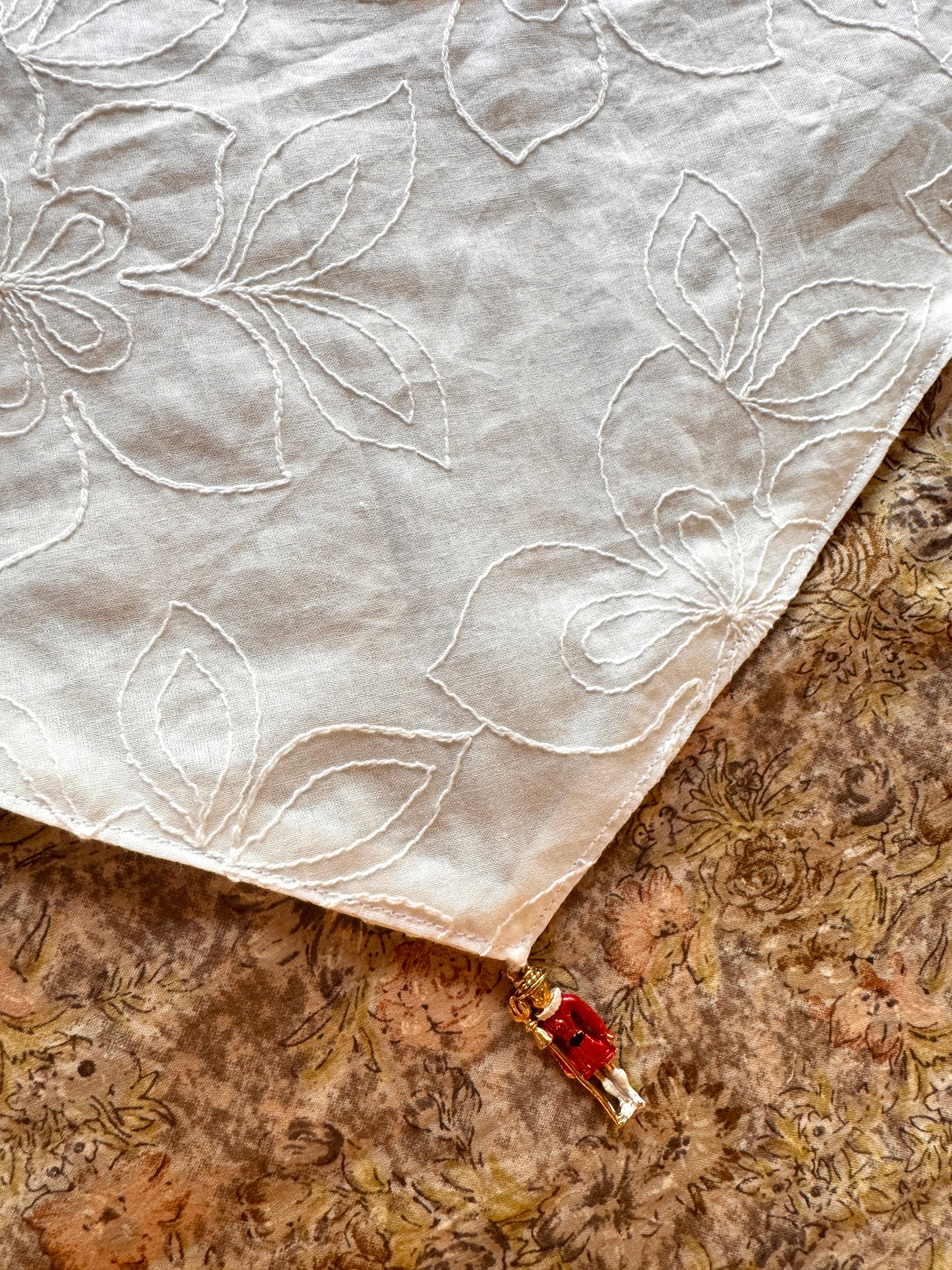 The floral patches are sourced from vintage tablecloths I’ve been collecting for some time.