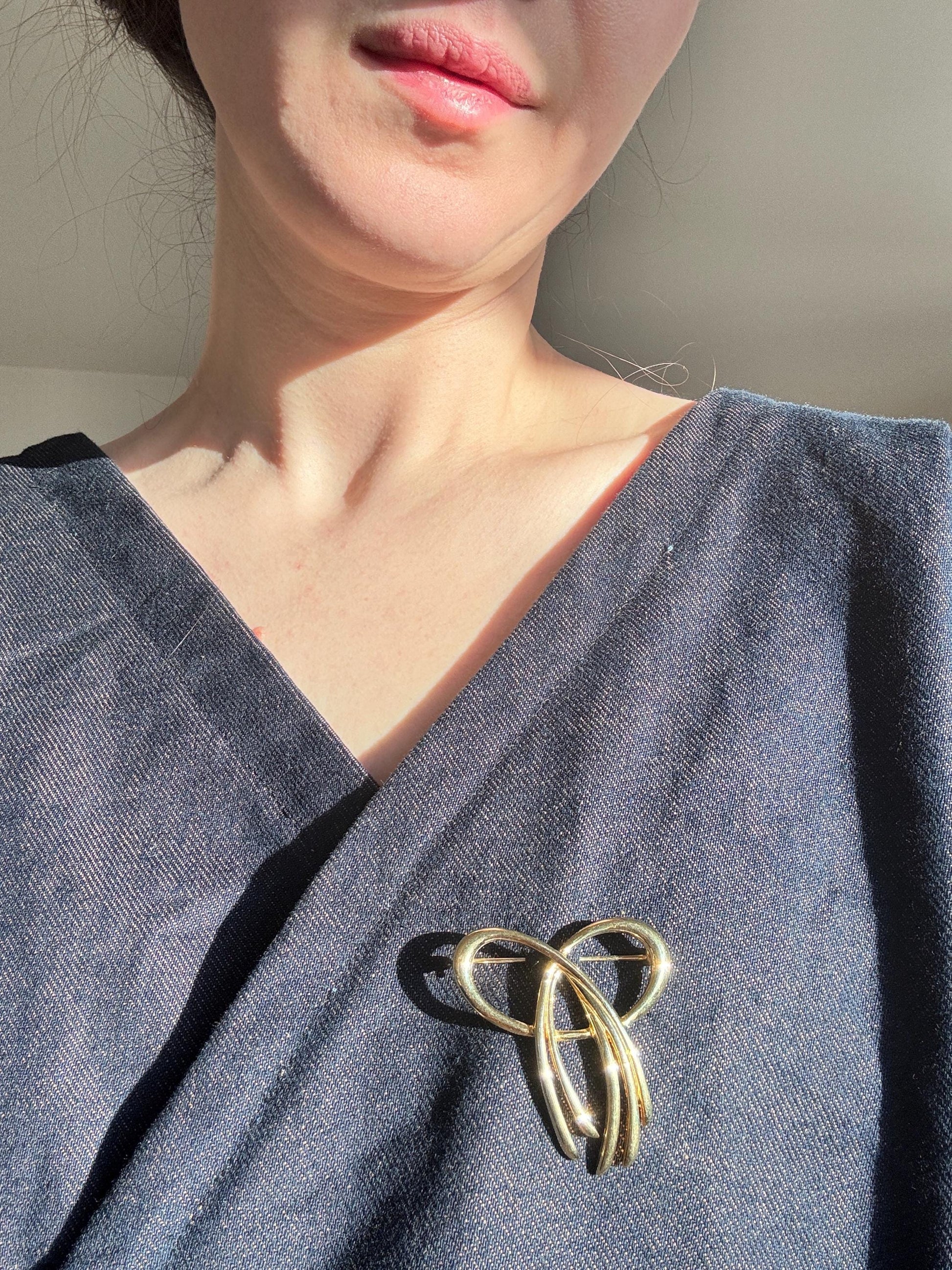 Vintage Brooches; Floral Bow Abstract Pin Brooches